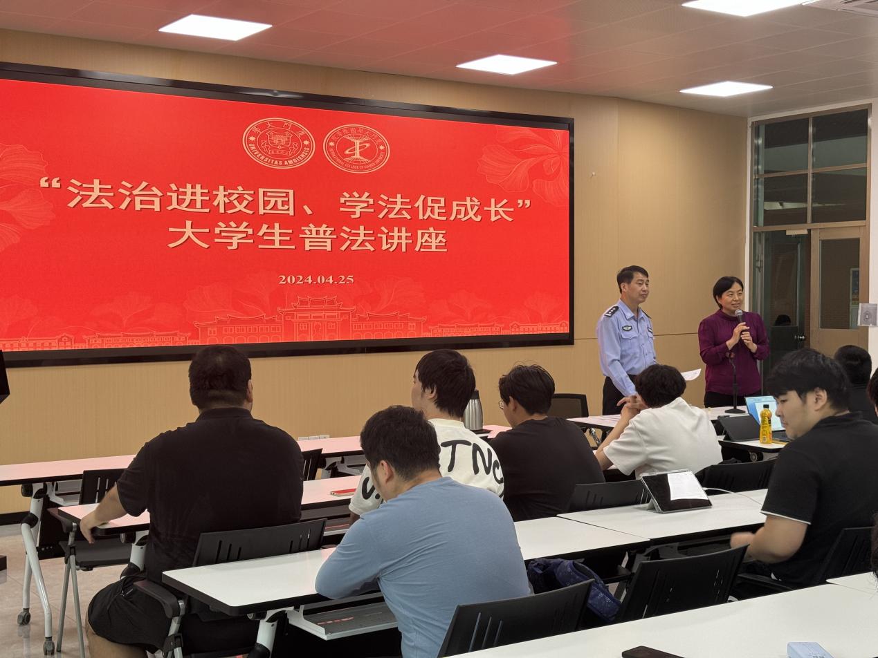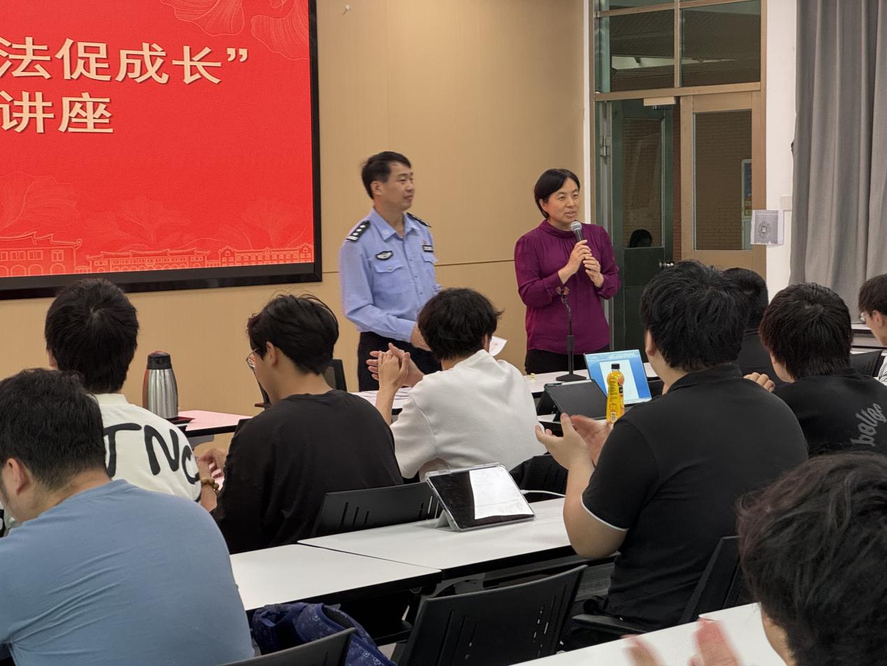 为深入学习贯彻习近平法治思想,不断深化大学生普法教育,提高学生的法治意识,营造“学法、懂法、守法、用法”的良好校园环境和氛围,4月25日,我院邀请警官到校开展“法治进校园、学法促成长”主题讲座。讲座由学院党委副书记马向华主持。