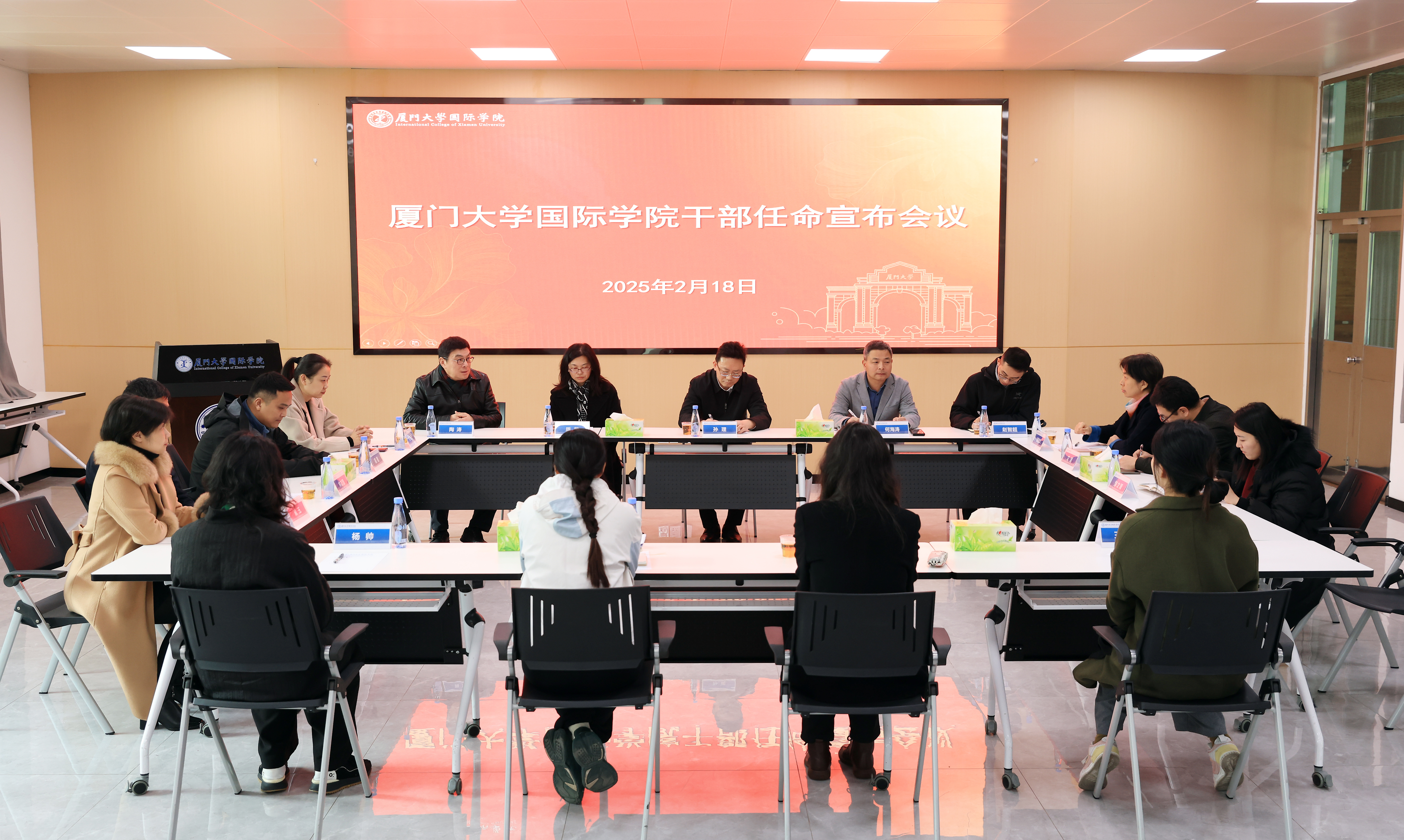 2025年2月18日上午,国际学院干部任命宣布会议在漳州校区4号楼101会议室召开。校党委副书记、组织部部长、统战部部长孙理出席会议。学院全体领导班子成员、科级干部、学院专业组组长参加会议。会议由孙理主持。