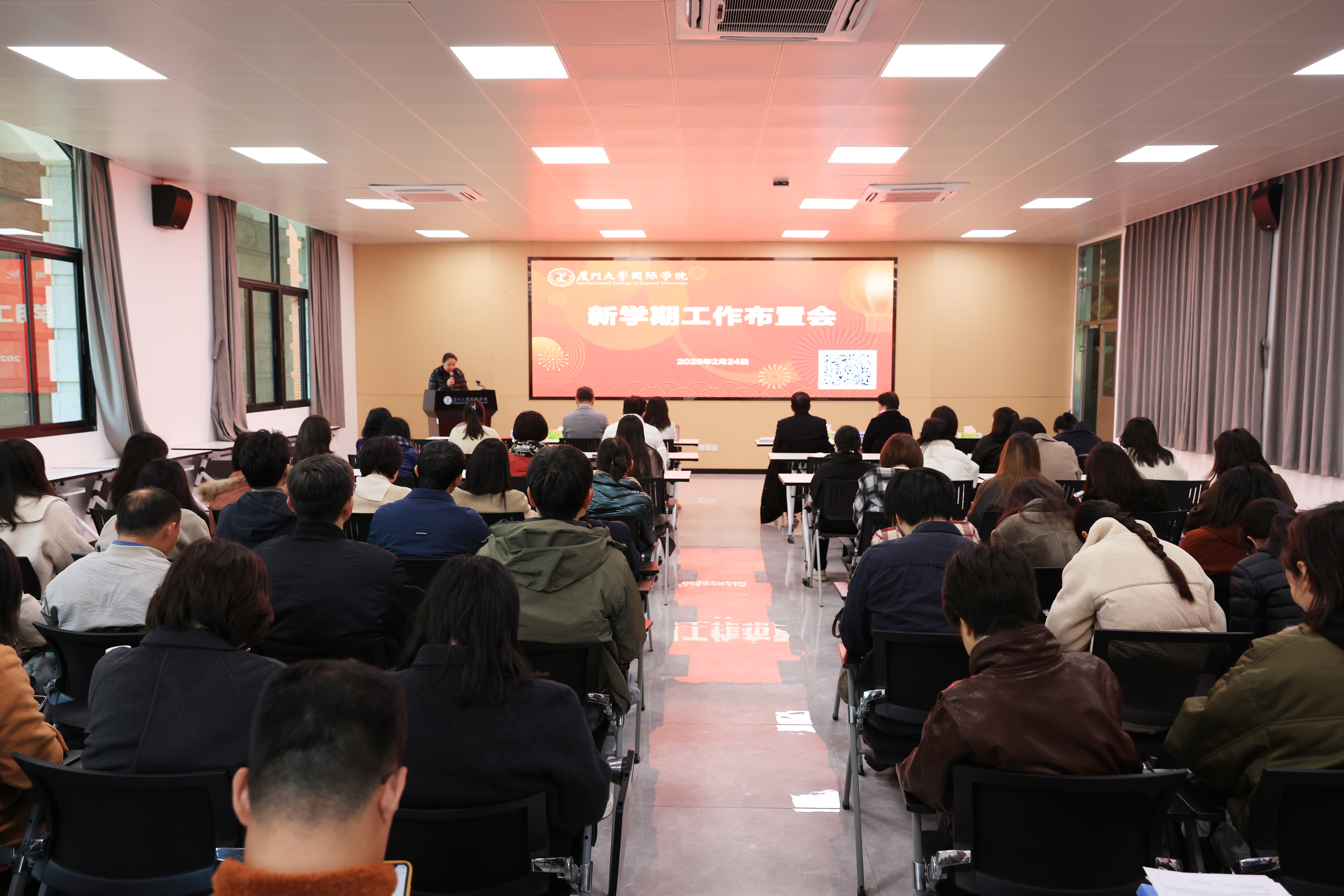 2月24日下午,国际学院2025年春季学期工作布置会在漳州校区四号楼101会议室举行。学院党政领导班子成员及全体教职员工参加会议。会议由张晓云副院长主持。