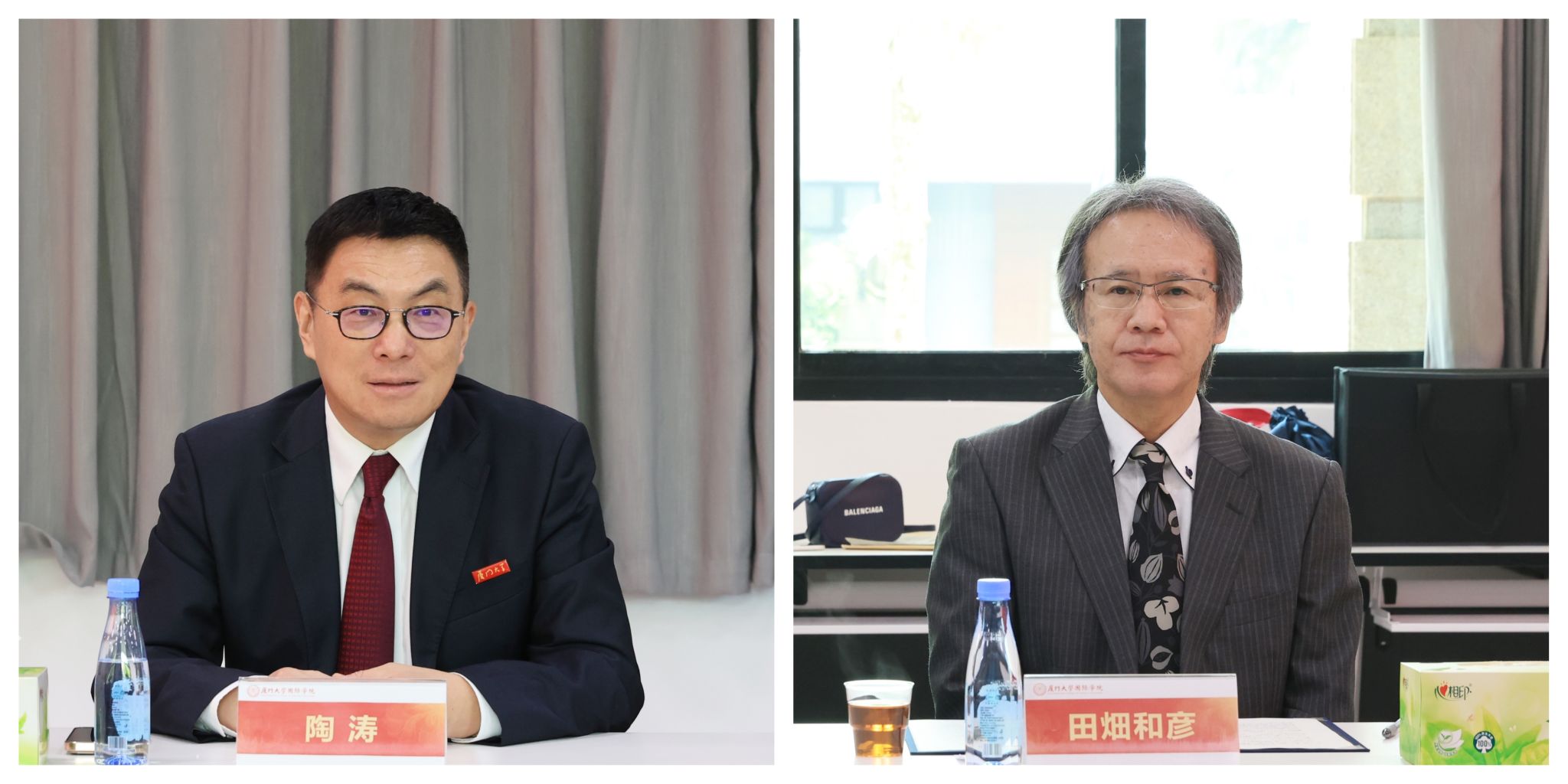 午,田畑和彦副校长一行与院长陶涛、副院长张晓云、何海涛、党委副书记马向华、日语教研组组长闫飒进行座谈交流