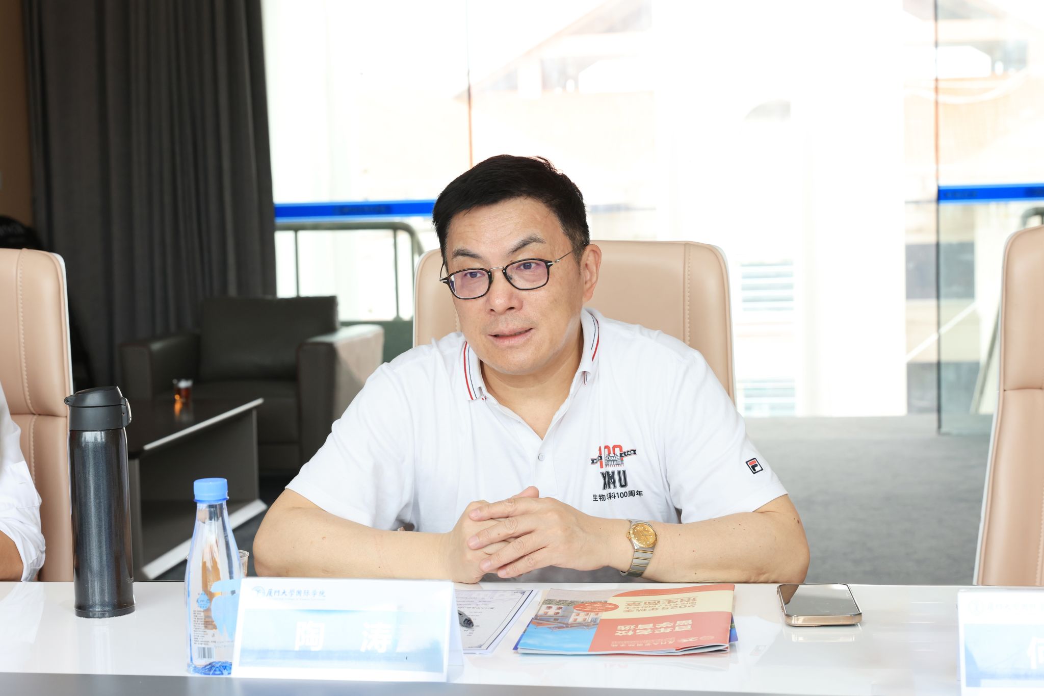 会上,陶涛院长对胡锋吉副校长一行的到来表示热烈欢迎,并简要介绍了学院的发展历程、办学特色及课程设置等情况,围绕学院国际化人才培养模式的积极探索与实践,全面展示学院“以生为本”的办学理念与育人成果。