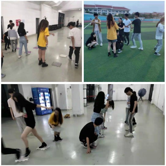 同学们在素拓师的指导下,首先通过松鼠与大树的暖身游戏破冰,打破固定的圈子。经过暖身游戏的短暂熟悉与适度运动后,开始主游戏——过硫酸河。游戏中,各团队成员积极认识自我、探索自我,运用发散思维积极沟通、协力合作,利用团队的资源顺利完成各项创造性活动。