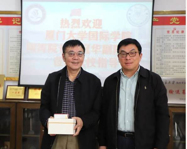 随后,陶院长一行到访泉州现代中学,并在该校王炳庆校长、康培东副校长的陪同下参观了校园。参观过程中,陶院长详细了解了泉州现代中学的发展历史,办学特色和学生情况。双方就如何进一步携手强化优质生源基地建设、共同培养国际化人才等相关问题进行了交流与沟通。