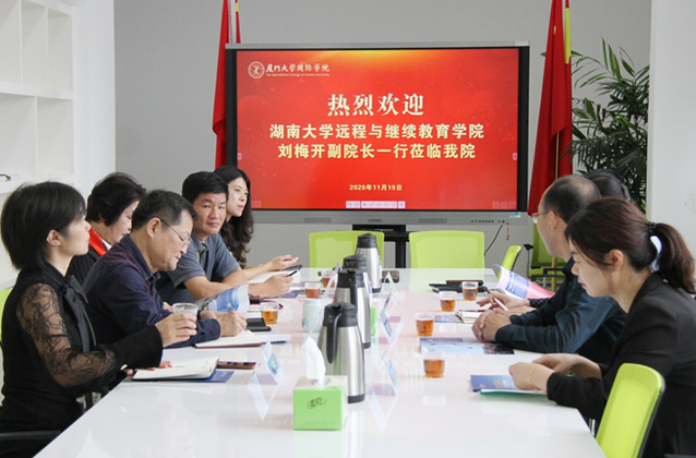 11月19日上午,湖南大学远程与继续教育学院副院长刘梅开、出国留学培训基地项目与教务办主任唐伟等一行4人来我院考察交流。国际学院党委书记何元赞、教学督导陈端端教授,以及留学项目、学生事务负责老师参加了座谈。