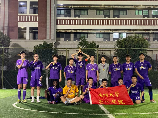 “纤纤初月生寒细,淅淅残潮到晓平。”渐微转冷的天气似乎让校园里少了些许热烈,但若你来到冠军争夺赛的现场,那便是另一番光景:铁围栏圈起的一小块草地里人声鼎沸,身着紫球衣的我院球员紧密配合,攻守兼顾;场下的队长和候补队员们密切留意着场上局势,蓄势待发;观众们席地而坐,随着场上队员的表现而惊呼喝彩……这番热闹的景象和如炬火般燈亮的照明灯混为一体,让初冬微薄的月光都显得热气腾腾。