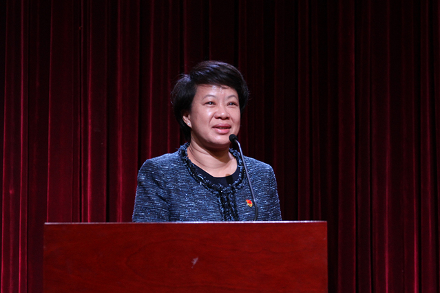 原学院党委书记王艺衷心感谢学校对自己工作的肯定,她回顾了自己在学院六年的工作经历,对学院全体教职工的辛勤付出和关心支持表示了感谢,并希望今后学院各项工作能够一如既往地顺利开展,再创辉煌。