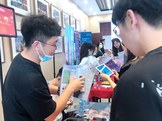 此外,英国提赛德大学也邀请了三位我院的毕业生来到了交流会现场助阵,分享自己的择校心得和目前的在读体验。他们帮助校方老师分发院校资料,接受学弟学妹的咨询。