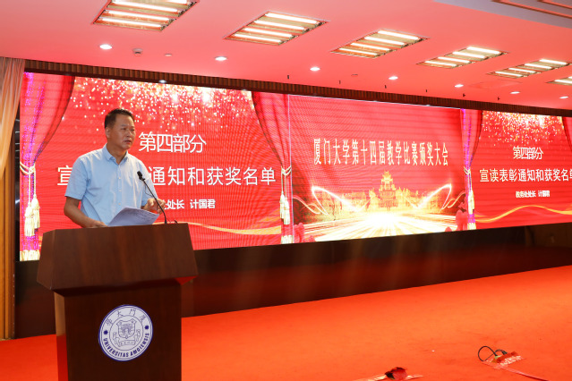 2020年10月9日下午,厦门大学第十四届教学比赛颁奖暨第十五届教学比赛启动仪式在科学艺术中心一楼多功能厅隆重举行。大会对教学比赛中的获奖个人与单位进行了表彰。我院林颖婷老师获得厦门大学第八届英语教学比赛一等奖及省赛二等奖,王振东老师获得厦门大学第十四届青年教师教学技能比赛二等奖及最佳课件奖。学院荣获比赛“最佳组织奖”。