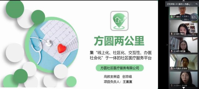 “大众创业扎根中国大地,万众创新共建时代未来。”7月12日,第六届厦门大学“互联网+”大学生创新创业大赛决赛通过线上腾讯会议平台举行,来自全校的115支队伍参赛云赛场。经过激烈的角逐,我院共有5个项目获奖,其中,红树林公益教育项目再次荣获金奖,“方圆两公里”社区医疗服务平台、洝荃公司——基于大数据的绿色保险产品研发、咨询和评估、“互联网+居家养老+社区互助”项目、实习生联盟——大学生实习平台获得铜奖。