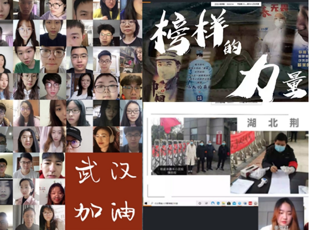 这是国际学院都柏林项目各班班会同学们的云端发言。的确,2020年是不同寻常的一年,春节的钟声尚未敲响,战“疫”的警报就已经骤然响起。在学生无法到校的特殊时期,学院党委积极组织开展疫情防控背景下的学生思想政治工作。各年级辅导员组织各班级,把抗疫一线的生动故事和感人事迹作为学生思想教育的生动素材,充分利用网络平台创新班会形式,集思广益,开展了特殊时期多场次、多主题的 “云”班会。除了各班同学精心策划,积极互动,学院党委副书记罗俊峰老师,专业教师洪镔、蔡晴云老师也先后参与到各班班会中。