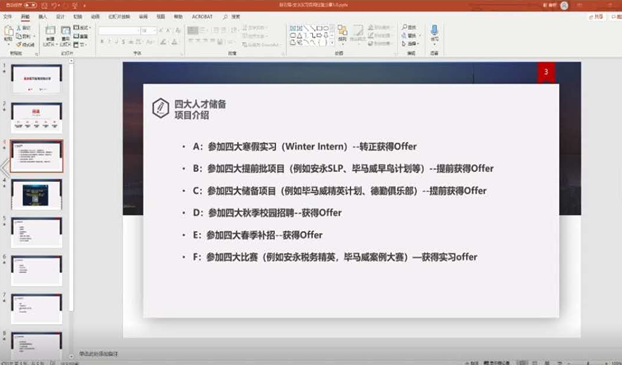 最后分享的是已获中国人民银行支行、浙江能源集团两个offer的2016级会计专业陆非凡同学。她为大家分享有关个人定位、招聘渠道、简历制作和笔试面试的相关内容。