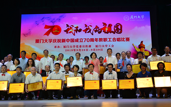 咏唱难忘激情岁月,礼赞追梦华美乐章。9月28-29日晚,一首首激扬澎湃的歌声不断从建南大礼堂传来,我校在这里隆重举行“我和我的祖国”庆祝新中国成立70周年教职工合唱比赛。全校共37支队伍参赛,几千名教职工伴随着新时代的交响曲,用悠扬动听的歌声和丰富多彩的表演,共同抒发爱党爱国爱校的火热情怀,唱响了新时代立足岗位争创一流、担当作为的奋斗者之歌,颂扬了新中国成立70年来的光辉历程。
