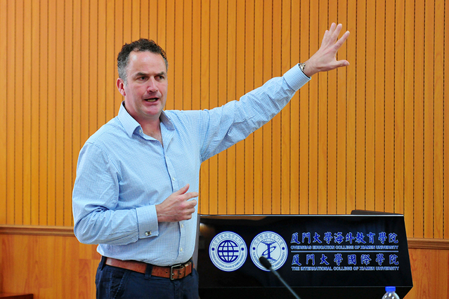 Phil Green曾经在英国陆军任职,2012年加入南安普顿大学。他具有丰富的国际化工作经验,履历涉及南美、南亚、东南亚、中东等多个区域。本次讲座的主题是“教师职业发展的挑战:如何提高教学质量”。Phil Green首先以英国脱欧为例表明当今世界处在不断的变化中,高等教育也不例外。为了应对这些挑战,每一个教师都需要不断提升自身能力。他指出,当今大学对教师的聘用大都是基于专业学术而非教学能力,因此南安普顿大学为每一位新入职的教师提供密集型的教学培训,确保他们掌握有效教学的基本原则。他还介绍了南安普顿大学在提高教学质量方面总结出的五大主题:学生反馈、同事协作、学习评估、共享创新和反思性实践。