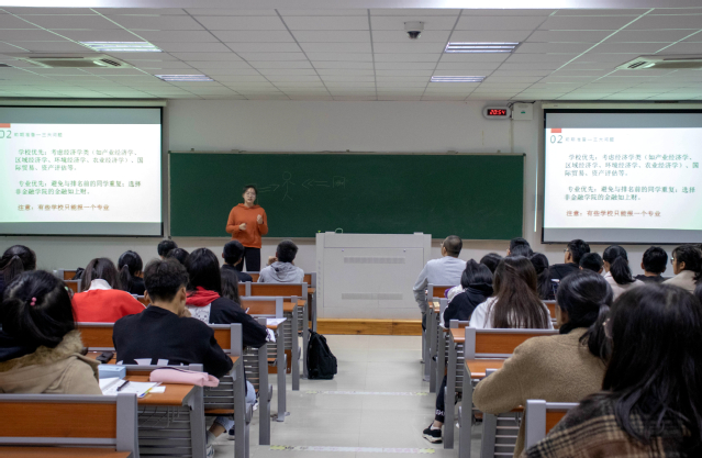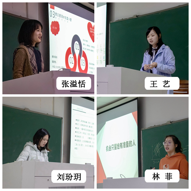 接着上台的是保送复旦大学的刘玢玥同学,她详细介绍了上交,人大,复旦,北大四所高校的保研夏令营。从参营选拔到每个营的具体要求及面试经过,玢玥同学做出了详细介绍,并且特别提醒了台下的同学们这些面试所需要的个人素质,并对数学和专业知识做出来多遍强调,帮助学弟妹们提前为保研做好准备。