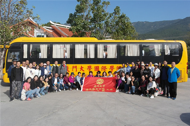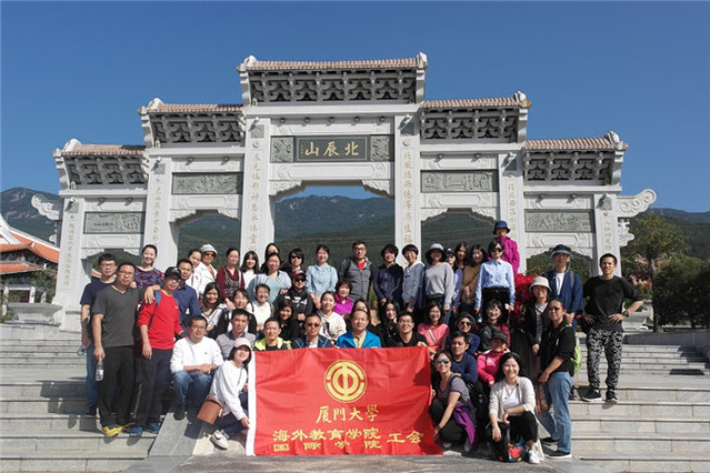 周末的北辰山秋意盎然,景色宜人。12月1日上午,海外教育学院50名教职工在学院院长陶涛、党委书记王艺的带领下,乘车来到同安区北辰山风景区。大家首先步入北辰山脚下的闽王馆,跟随着讲解员参观了解“闽王”王审知开闽的艰辛历程,缅怀其建设福建的丰功伟绩,体会开闽文化对“中国梦”奋斗目标的精神感召力。接着,大家在北辰山剧场欣赏了舞蹈《开闽雄风》、川剧变脸、传统杂技和特技达人秀等精彩表演,演员们精湛的表演、高难度的演出震撼全场,赢得阵阵喝彩,也让在场所有人感受到了中华优秀文化的魅力。