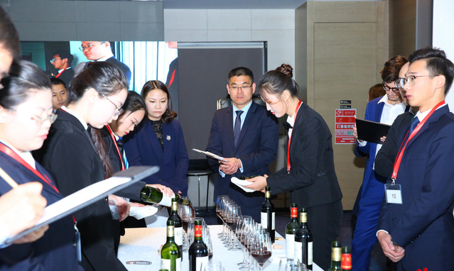 比赛中,姜慧染同学沉着冷静发挥稳定,展现出了专业侍酒师的素养。决赛分为三个环节:产区介绍、开瓶及餐酒搭配。在产区介绍环节,候选人需从历史风土,葡萄品种,酿造方法,酒品特点等方面,向5位评委介绍抽签到的产区。开瓶考试则是要求在4分钟内开2瓶波尔多红葡萄酒,并将其中一瓶平均倒入6个杯子。最后的餐酒搭配环节是情景模拟考试,候选人需为给出的菜品搭配两款波尔多及波尔多优级产区的葡萄酒并选择其中一款为5位评委侍酒。