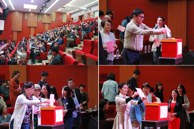 随后,大会进行学院工会委员会换届选举工作。大会宣读了校工会关于海外教育学院/国际学院工会委员会换届选举的批复意见,审议表决通过了选举办法、总监票人及监票人、总计票人及计票人名单。按照选举办法,经过严格的投票和监票、计票程序,大会以无记名投票方式差额选举产生了新一届工会委员会,新一届工会委员会由戴玉、肖宁遥等7名教职工组成。