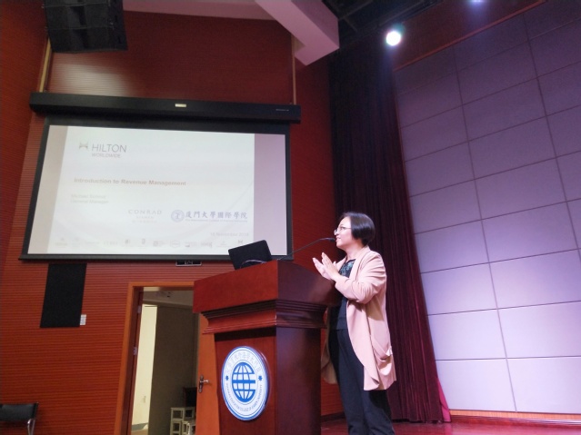 11月14日下午,厦门康莱德酒店总经理、我院客座教授Michael Schmitt先生做客学院“第二课堂”前沿讲座,为我院师生们带来一场以“收益管理”为主题的精彩讲座,旨在帮助同学们进一步了解收益管理在酒店经营中的重要性以及具体应用过程,拓宽学生视野,更好地把握理论与实践的结合。讲座由海外教育学院/国际学院副院长傅万里女士主持,康莱德酒店总经理秘书Cici、外事秘书靳凯淇、酒店管理专业教师及全体学生到场聆听。