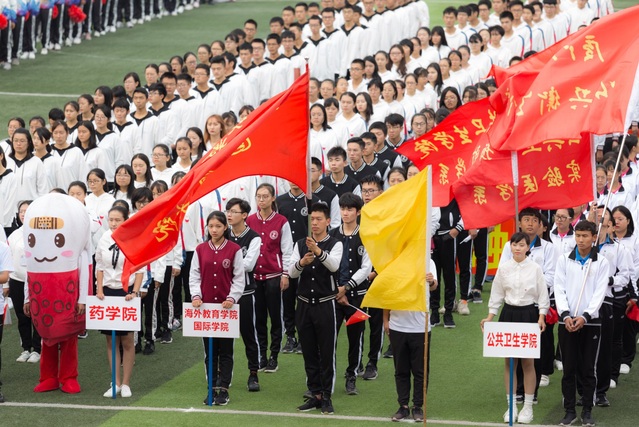 9号上午,晴空白云,秋风飒爽。气势磅礴的队列操表演拉开了运动会的帷幕。国际学院/海外教育学院方阵闪耀登场,中西交融,异彩纷呈。中外学子挥舞着各色的国旗,彰显出包容、和谐、努力构建人类命运共同体的风范,坚定自信的嘹亮口号体现出我院同学的青春活力。