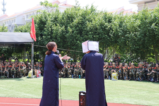 陶院长首先代表国际学院党政领导班子对坚守岗位、奋斗在高温一线的军训全体教官及辅导员表达了衷心的感谢。他强调,军训在提高学生组织觉悟、激发爱国精神、增强国防意识和纪律观念有着重要的意义,勉励新生珍惜难得的军训机会,全身心投入到军训中,锻炼坚强意志品格,预祝此次军训取得圆满成功。