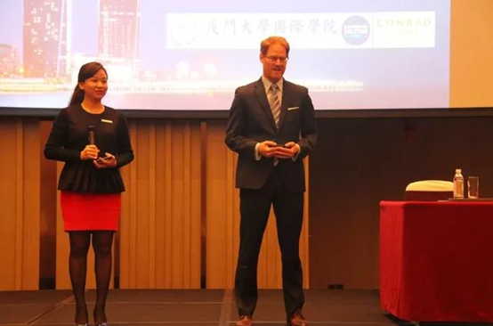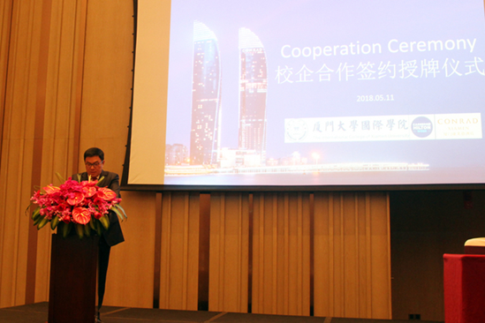 院长陶涛教授对双方积极推进校企合作表达了感谢,并从行业发展前景、高素质复合型人才的需求、教学与实践并重、校企合作人才培养模式等方面表达了我院对于此次合作的高度重视,阐明了我院酒店管理专业的学生优势,与此同时他也表示了校企合作对人才培养的重要作用。在酒店业人才的培养上,他认为实践与理论是不可或缺的,亦对康莱德酒店在培养酒店高素质人才上作出的卓越贡献给予了高度评价和认可。国际学院期待和厦门康莱德酒店一起根据需求,展开合作,共同探索校企合作及人才培养的新模式。厦门康莱德酒店作为我院学生的就业基地,学院将优先推荐优秀人才到酒店就业。相信国际学院与康莱德酒店的合作一定能取得圆满成功,也相信康莱德酒店定会再创辉煌。