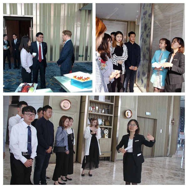 茶歇后,招聘经理林雅女士陪同我院师生参观酒店,并对即将进入酒店实习的15名我院学生做入职培训介绍。