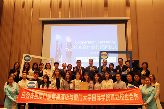 2018年5月11日下午,我院院长陶涛教授、副院长傅万里女士,副书记伍伟平先生一行莅临厦门康莱德酒店,参加乐鱼网页版登录入口和康莱德酒店校企合作签约授牌仪式,共同探讨合作机遇和未来合作方向。