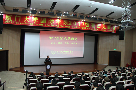 上午9点30分,家长会在图书馆大报告厅拉开帷幕。海外教育学院\国际学院院长陶涛教授首先上台致辞。他对不远千里赶来参加家长会的家长们表示最诚挚的欢迎,对家长们重视和支持学院的工作表示衷心感谢。接着,他向家长们汇报了国际学院的教育教学情况以及取得的丰硕成果,强调了家校合作的重要性,并向家长们提出了三点希望:一是希望家长多关注孩子的学习情况,按照学校的各项管理规定影响和教育学生。二是希望家长相信和配合学校,保持学生、家长和学校三方有效的沟通与紧密合作。三是希望各位家长能够就学院的办学发展,就学生的成长成才出谋划策,提出宝贵意见。