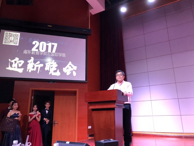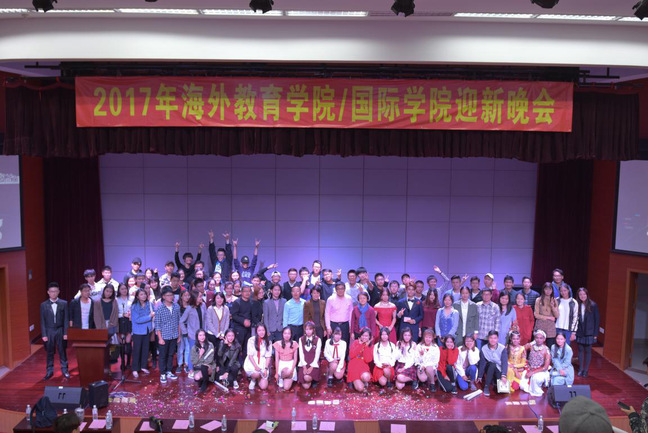11月19日晚,海外教育学院/国际学院2017年迎新晚会在翔安校区坤銮楼报告厅如期举行。正式入场前,报告厅外早已排起了整齐的长队,瑟瑟秋风也难以削减同学们赶赴这场盛典的热情与期待。学院院长陶涛教授、学院党委书记王艺、副院长黄冠华、学院党委副书记伍伟平和团委老师、辅导员们也一起出席了此次晚会。