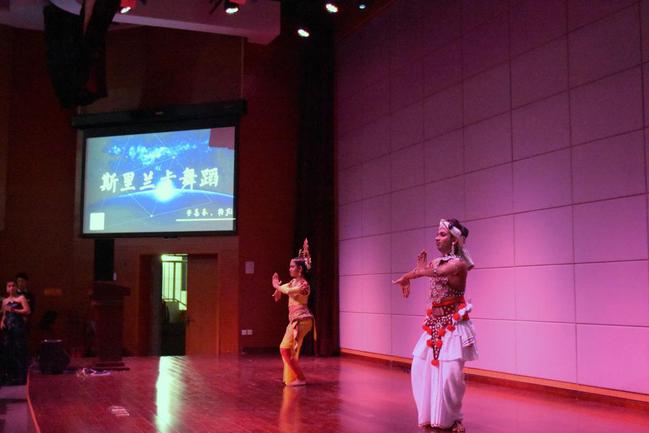 高山流水,知音难觅;阳春白雪,余音绕梁。青丝垂肩,青色长裙,优雅恬静,像是从画中走出来的琴者方文蓉用她娴熟的指法与古典的乐曲《高山流水》惊艳了全场。当极具异域风情的音乐响起,两位斯里兰卡的留学生安喜乐、梅花化作中斯友好交流的使者,以独特的服饰与舞蹈向观众勾勒出在那个不远的国度里,何为劳动之美,何为文化热爱与自信,令人心神向往。接着,李泓君同学带来独唱《我怀念的》“我怀念的是无话不说,我怀念的是一起做梦。”那份怀念的深情,那温柔而不失力量的声线,那精湛的唱功,这一切都在歌者与观众之间搭建起深切的共鸣,俘获了观众的心。下半场接近尾声,刘嘉婧、王熠携钢琴与架子鼓合奏《克罗地亚狂想曲》而来,克罗地亚战火后的残垣断壁,倒映在血泪和尘埃中的夕阳,都通过两位表演者倾注感情、激昂高亢的演奏淋漓尽致地得以展现,激起人足以跨越时空的狂想。