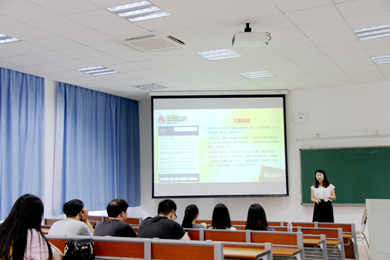 5月25日上午,英国德蒙福特大学的Sammi老师来到国际学院,在坤銮楼C406教室举办行前说明会,为9月即将赴该校学习的同学们介绍了出国留学前需要准备的各项事宜。今年预计将有35名同学选择到德蒙福特大学续读本科最后一年的课程,是目前我院前往德蒙续本人数最多的一届学生。