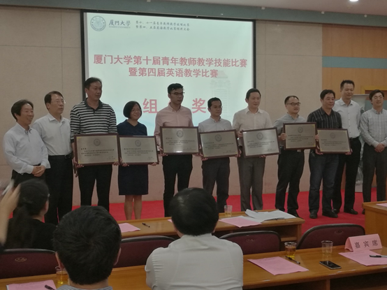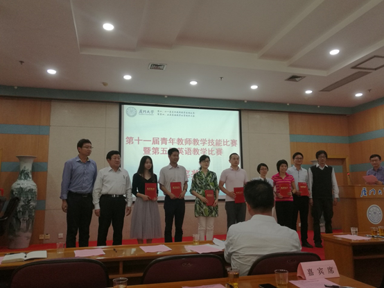 2017年4月24日下午,厦门大学第十一届青年教师教学技能比赛暨第五届英语教学比赛颁奖仪式在嘉庚主楼-220教室隆重举行。海外教育学院\国际学院副院长傅万里老师、工会主席刘强老师,以及获奖教师代表到场参加了活动。