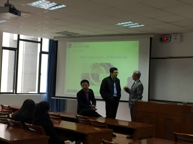 2017年3月16日,英国布拉德福德大学国际学习中心负责人Martin Sedgley先生和中国及东亚地区办公室经理丁雷老师来到国际学院,在坤銮楼B213教室为我院学生举办留学讲座。本次讲座为同学们进一步了解布拉德福德大学提供了宝贵的机会。