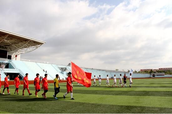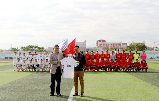 入场式中,两支球队穿着统一服装在旗手的带领下精神饱满的走入足球场,在舞台中央展示对比赛必胜的信念及对足球执着的热爱。国际学院校友会会长、九洲之星实业有限公司董事长俞培众先生向郑院长赠送了球衣。球衣上的10号,代表着国际学院足球队成立10周年。十年来,国际足球队取得了不少的荣誉,曾获得2010年厦门大学园区杯冠军,2014年厦门大学翔安校区新生杯冠军,2016年厦门大学翔安杯冠军。