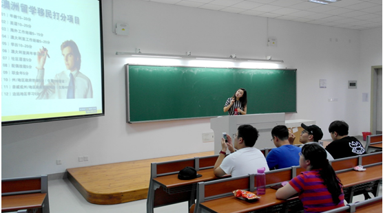 宣讲会上,招生官员刘老师先用幽默风趣的语言向同学们介绍了中国留学生如何适应澳大利亚的文化、生活方式,并与同学们分享了自己在澳大利亚的生活经历和丰富的学习经验,这使我院在场学生对老师口中的澳大利亚产生了浓厚的兴趣。接着,刘老师就澳洲移民以及留学情况进行了分析,向同学们介绍了澳大利亚的福利津贴以及澳洲留学移民打分项目,鼓励同学们积极做好人生规划,期待大家可以通过留学,创造一个更美好的未来。看到同学们对澳大利亚生活都十分感兴趣,刘老师还向同学们介绍了澳大利亚的风土人情与名胜古迹,比如澳大利亚的大堡礁、悉尼歌剧院、昆士兰的热带雨林,无不让同学们对澳大利亚充满了向往和憧憬。