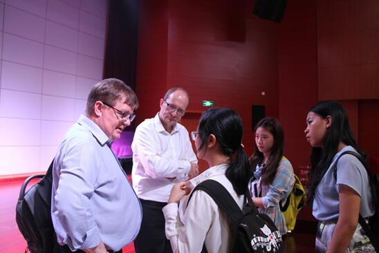 座谈结束后,Andrew校长在郑院长的陪同下,一同参观了国际学院的展厅、图书馆、教室等教学配套。中午,Andrew校长与我院都柏林项目学生见面,他向同学们简要地介绍了都柏林商学院的情况及专业特色,欢迎同学们以后有机会到该校交流学习。在问答环节中,学生就专业学习及个人职业规划等问题与Andrew校长积极互动,现场气氛活跃。