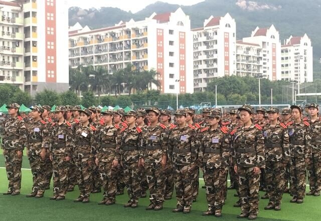 军训期间,在思明校区的操场或是校内道路上,随处可以看到新生军训的身影,头顶着骄阳,汗湿透衣衫。齐步走、正步走、齐步变正步、解散、集合及分列式等训练科目已经练得有模有样。方队整齐、精神饱满,步伐矫健、口令准确,尽管赤日当空,但学生们的热情不减。不少同学和老师写下了军训感言,来记录他们珍贵的大学第一课。
