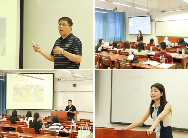 唯独二号楼的B楼内却热闹非凡。英语、日语、汉语等各种语言的讲课声,热情洋溢地从不同的教室里传出来,与夏日的阳光交织在一起,气氛格外热烈。在这里,海外教育学院/国际学院近40位青年教师正在进行着激烈的教学比赛。
