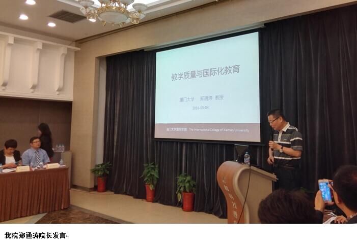 会议中,中国留学服务中心副主任车伟民先生以及国内院校的各位专家学者做了多场精彩纷呈的发言,共同交流探讨了SQA HND项目在中国的发展。会上,我院郑通涛院长做了《教学质量与国际化教育》的发言,他指出,近年来,出国留学已越来越普遍,如何培养合格优质的留学生,是院校培养人才的重中之重。郑院长通过介绍厦大国际学院近十年来对SQA HND项目的摸索坚持,总结实践经验与教训,与现场嘉宾分享了提高HND项目教学质量的新理念、新思路。郑院长的发言引起热烈反响。