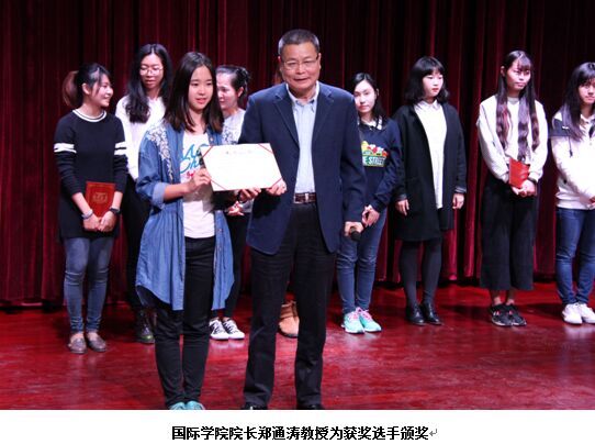 精彩的比赛过后,主持人邀请了本次担任评委的外籍教师Robin Mitchell和罗元祥博士做了简短的点评。国际学院院长郑通涛教授也上台对同学们的精彩表现大加赞赏,表示今后国际学院还将举办类似的活动提高同学们学习语言的热情,并为获胜选手颁奖。