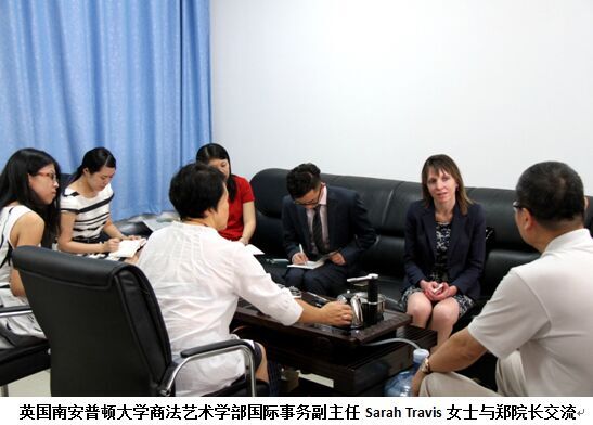 郑院长对Sarah Travis女士的来访表示欢迎,他指出两校的合作前景广阔,其中艺术项目自2008年开始合作,已输送了近百名学生赴南安普顿大学温彻斯特艺术学院学习。今年新合作的“1+3”本科项目,招生情况良好,社会反响热烈。他希望能进一步推进商科专业“2+2”项目的合作,并在互派师资、科研等相关领域继续深化合作与交流。