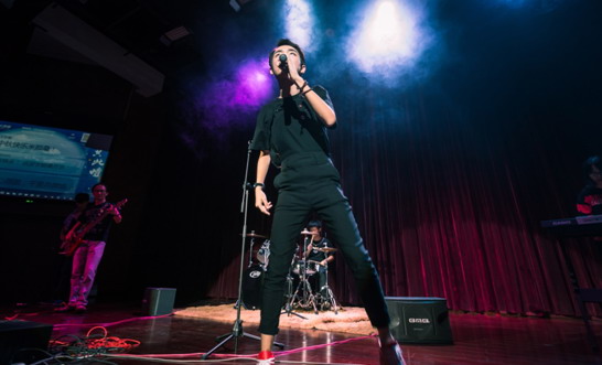 在未名乐队的激情开场秀下,晚会正式拉开帷幕。架子鼓、电吉他与电子琴的组合完美勾勒出了主唱吴鹏高亢的声线,一首《无地自容》瞬间调动了全场气氛。