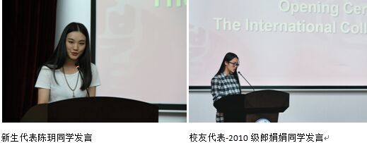 随后,2015级新生代表们以饱满的热情和新鲜血液独有的朝气,用洪亮的声音发表了青春洋溢的致辞,言语中透露出自己对大学生活的期待以及对未来无限的展望,仿佛在她们充满自信的脸庞上看到了光辉的未来。我院老生代表、以及校友代表刚取得英国利物浦大学硕士学位的2010级郎娟娟同学也在典礼上发言,与新生们交流大学生活感想和留学经验。