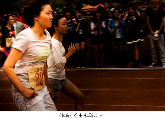紧接着进行了女子组3000米的比赛。明知山有虎,偏向虎山行。这是一场与极限的挑战,包括我院曾婉婷同学在内的来自各院的女运动员却义无反顾地迈上赛道,在漫漫征途中留下了见证坚毅的脚印。刚开始的几圈对于训练有素的女运动员来说并不吃力,但最后的几圈却着实在挑战极限。我院的观众反响十分热烈,加油声、呐喊声从未间断,并且时刻将注意力集中于参赛的女运动员身上。女运动员们用她们的步伐展示了体育运动贵在坚持的精神。