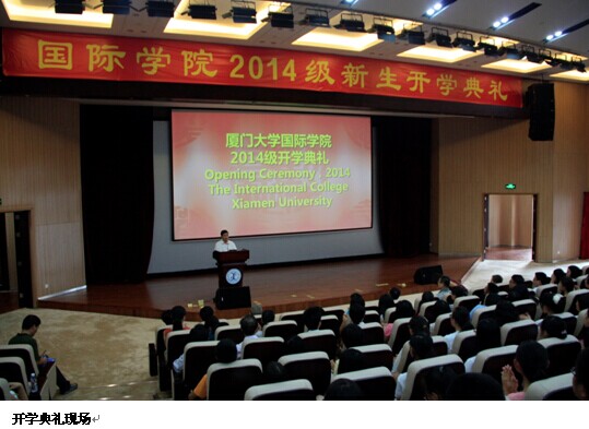 9月26日下午,国际学院2014级新生开学典礼在厦门大学翔安校区图书馆一楼报告厅隆重举行。海外教育学院/国际学院院长郑通涛教授、副院长傅万里、党委副书记伍伟平、办公室主任黄冠华等学院领导、以及国际学院全体教职员工出席了开学典礼。国际学院2014级全体新生参加了开学典礼。典礼由国际学院副院长吕子玄主持。