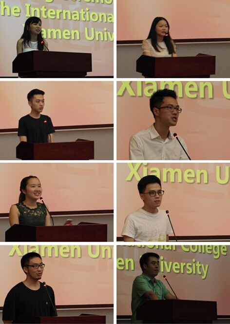 开学典礼临近尾声,多位国际学院校友上台,与新生们分享他们的学习、生活经历。他们有的从留学生活的趣事出发,深入浅出地告诉同学们学好英语的重要性。有的校友与新生们分享了在学校与在国外学习的经验,使得新生们对于即将开始的大学新生活及未来的留学生活有了更进一步的认识。有的校友则结合自己工作、创业中的酸甜苦辣,督促新生们端正学习态度,引来了同学们的阵阵喝彩。校友们的发言生动地展示了作为一个“国际人”应具有的品格和素质,让在场的同学们有了深刻的感悟。