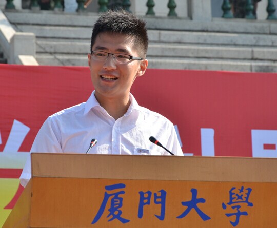 老生代表、管理学院2012级本科生柴干向全体新生们说,希望大家能够尽快适应大学的学习生活,做一个独立、自由的人,学会独立思考,勇于尝试。树立坚定的理想信念,有高远的精神追求,努力传承厦大精神。