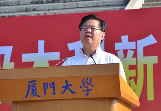 朱崇实首先致辞。他代表学校,向来自五湖四海的2014级4677名本科新同学表示热烈的欢迎和诚挚的祝贺,同时,也向培育新生们成长、并且帮助他们选择了厦大的家长、老师及亲友们表示衷心感谢和崇高敬意。