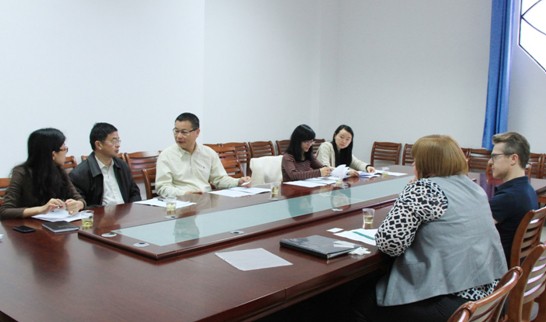 4月9日下午,加拿大阿尔伯塔大学文学院国际事务主管Melissa Casey、招生主管Trevor Buckle莅临我院进行友好访问和交流。我院在主楼2号楼B509会议室举行座谈会,欢迎阿尔伯塔大学代表一行。我院院长郑通涛教授、副院长吕子玄等学院领导及学院英语教学组老师、教务秘书、项目秘书共同接待了来宾。