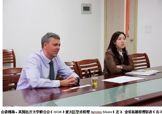 会谈过程中,我院院长郑通涛教授对英国北方大学联合会(NCUK)代表的来访表示欢迎,并简要介绍了国际学院近年来的国际合作情况和办学成果。Aynsley Moore对学院的热情接待表示感谢,并介绍了英国北方大学联合会(NCUK)的教学方针、师资力量、学术活动和科研实力等方面情况。通过会谈,双方相互加深了了解,就许多合作意向取得了共识,主要就硕士预科项目合作中存在的问题、改进方法交换了意见。
